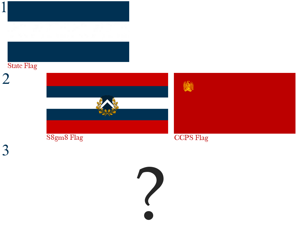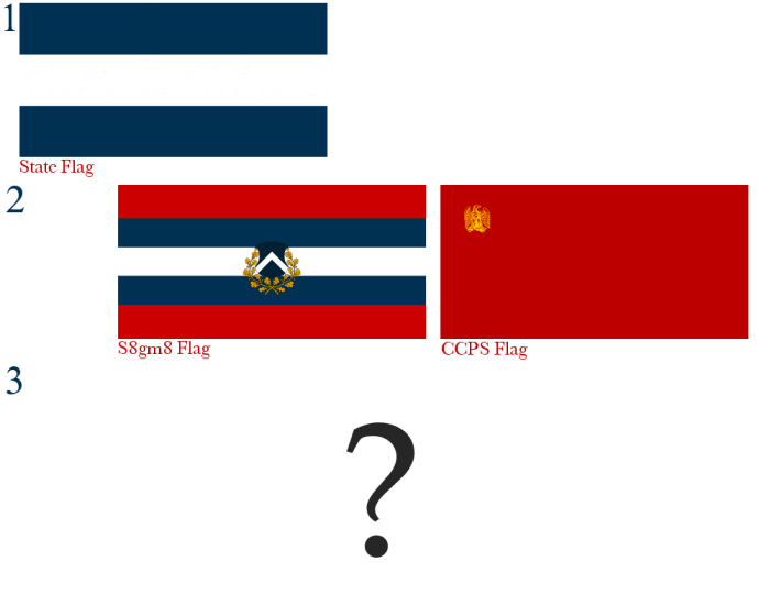 Under my direction as Sovereign of the Most Honourable Order of the Throne of Sandus, acting thereby as the font of honour within our State, I hereby elevate the Sôgmô’s personal flag and the Citizens’ Communist Party flag to be just under the State Flag. All other flags shall be on the next lower level.