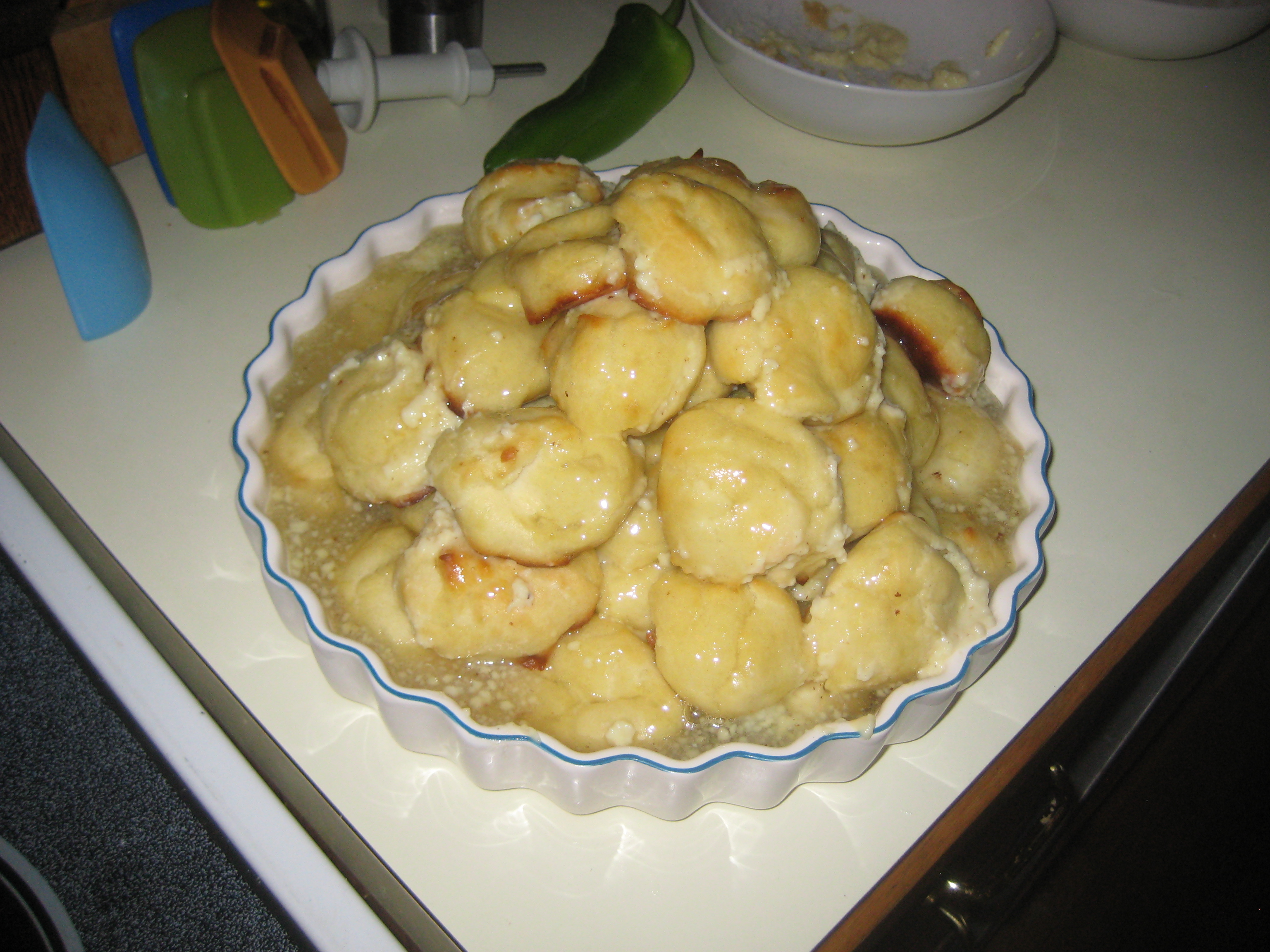 In addition, a croquembouche – a French cake made of creme-filled puff pastries and caramel – was attempted. Unfortunately, it didn’t turn out as well as hoped. Better luck next year, certainly!
