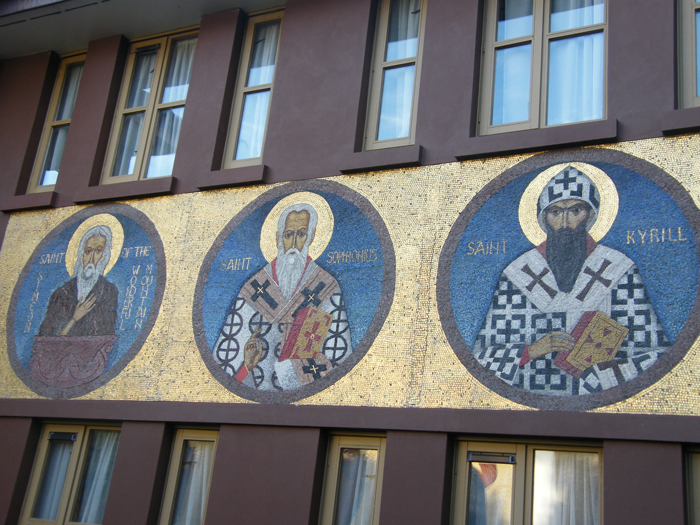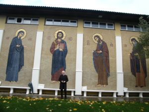1) The first photograph can relate to Sandus’s veneration for the ancient: ancient religion, ancient history, and ancient art and architecture. The Byzantine-style mosaics fit perfectly with Sandus’s planned architecture, which combines classical Roman and post-classical Roman (i.e., Byzantine) architecture with other influences: such as, Gothic, Romanesque, Baroque, and so on.