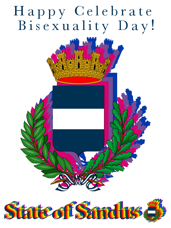 The Central People’s Government, with the commemoration of Celebrate Bisexuality Day, has made a stern message to social conservatives and anti-LGBT activist alike: biphobia and homophobia are not allowed in and are disdained by Sandus and Her People. Sandum citizenship has been established on the belief of human worth and dignity, and the State of Sandus extends this belief derived from the Philosophy to the world arena. As some states continue to oppose and persecute the LGBTQ community, Sandus remains a firm national beacon of liberty and freedom for all. In doing so, the State shows its trepidation for states such as New Israel which have opposed the human worth and human dignity of members of the LGBTQ community, thereby alienating them from the free, democratic world.