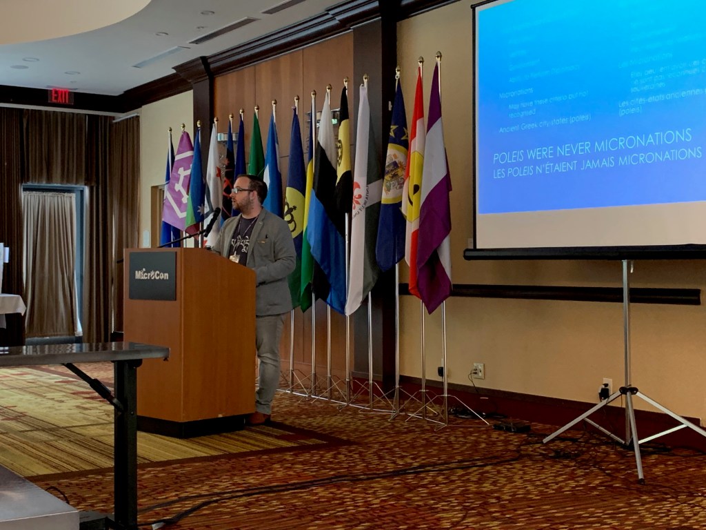 The Sôgmô presented their paper on micronationalism and Ancient Greek history in both English and French. In 2017, a micronationalist at the last MicroCon claimed that poleis were ancient equivalents to modern day micronations. In their paper, the Sôgmô rejected the idea that Ancient Greek city-states were micronations, since they had many criteria of states that micronations lack. But there are some similarities between modern micronations and ancient city-states, það argued. In what followed, the Sôgmô compared the Montevideo Convention’s criteria to elements in the plots of Aristophanes’s comedy the Acharnians and of the historian Herodotus’s description of Cyrus the Great’s recognition as Persian nobility.