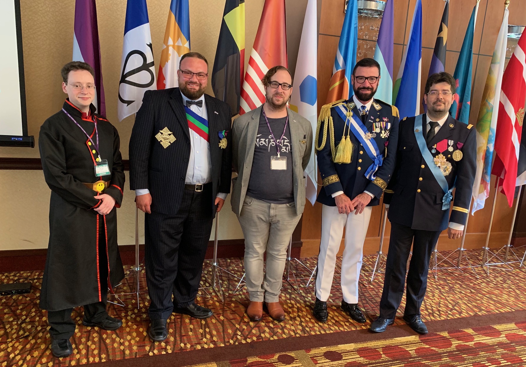 The Sôgmô and Sanôba, the Sôgmô’s boyfriend, arrived on 18 July in Hamilton, Ontario, to attend MicroCon 2019. They were joined by Adam Camillus von Friedeck, known also in his own right as HM King Adam of Überstadt, and Dominic Desaintes, the Minister-President of Saint-Castin.