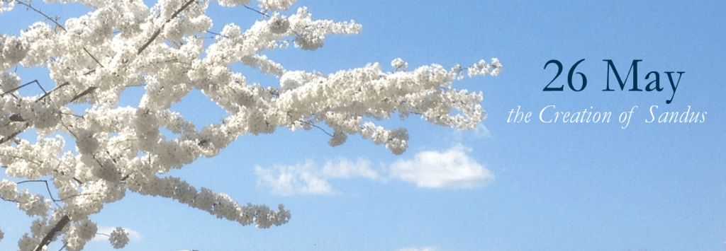 This evening the Sanôba and I will prepare a small “cook-out” feast and meet many of you online, as we have all come to learn to do in the past few months. (We will be having a vegetarian feast, of course, as I am currently celebrating Saga Dawa, the month of the Buddha’s birth, enlightenment, and death.) One year ago we came together in Quercus Candida to enjoy each other’s company, our grandest occasion yet. We talked about Sandus in its contemporary political world, and this year this is also on our minds as the world faces the novel coronavirus. I look forward to our conversations this evening as we enjoy food and celebrate together and wonder what this year has in store.