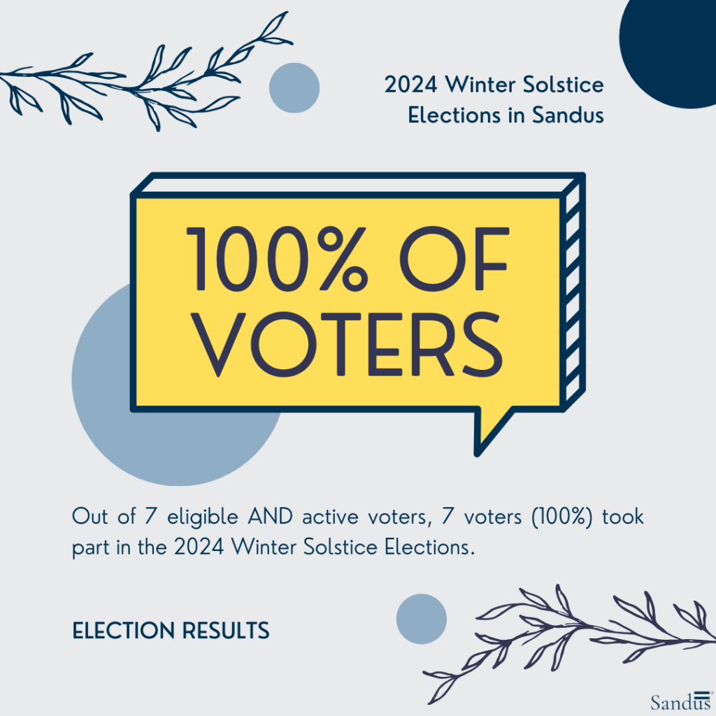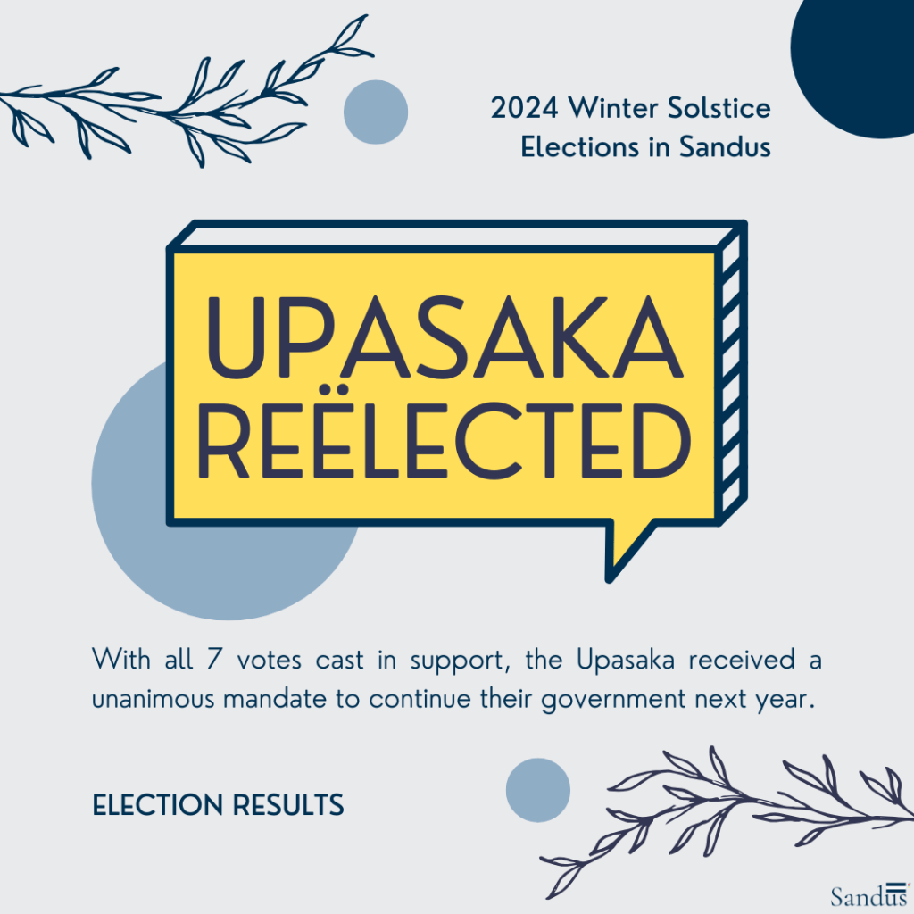The Sandum people have unanimously reëlected Gaius Soergel Publicola as our micronation’s monarch. Out of seven eligible and active voters, seven votes were cast in the first election since the monarch’s title was renamed to Upasaka, Soergel’s title as an ordained Buddhist householder. Participation in this year’s election was up from last year’s when only six votes were cast, and there were nine eligible and active voters.